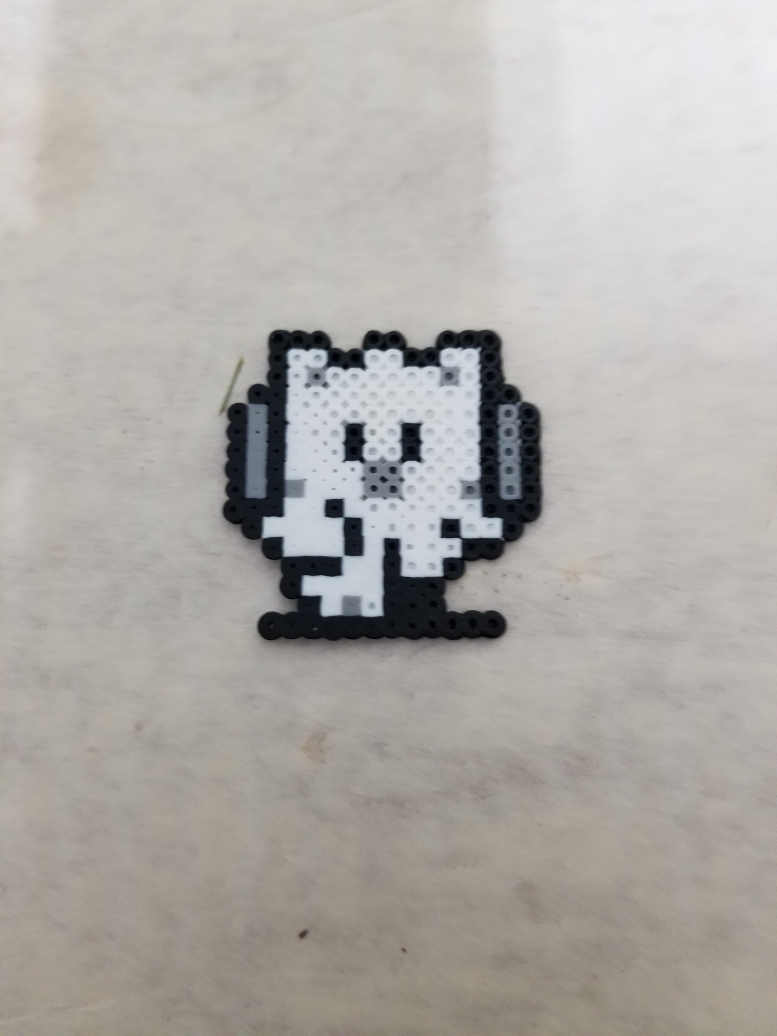 A tiny monochrome perler bead sprite of a moogle from the final fantasy games. The moogle can be turned into a magnet or hair clip at buyer's request. The moogle was made with micro perler beads.