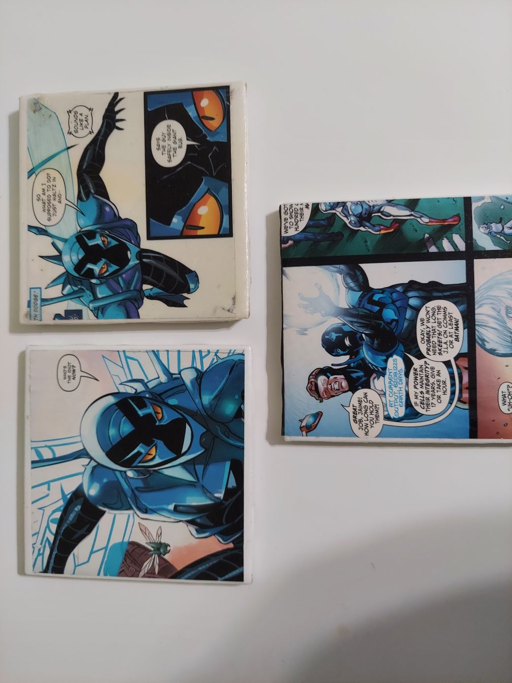 Blue Beetle Comic Book Coasters made from actual comic books! This photo is just for sample use only. Message me for more variety! Can mix and match with other listings to make a set of 4! Listing price is for a set of 4.