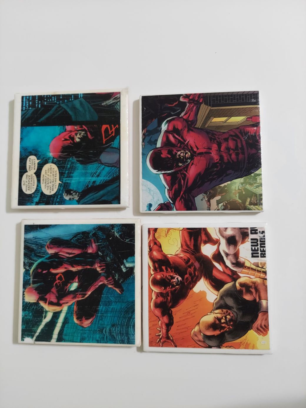 Dare Devil Comic Book Coasters made from actual comic books! This photo is just for sample use only. Message me for more variety! Can mix and match with other listings to make a set of 4! Listing price is for a set of 4.