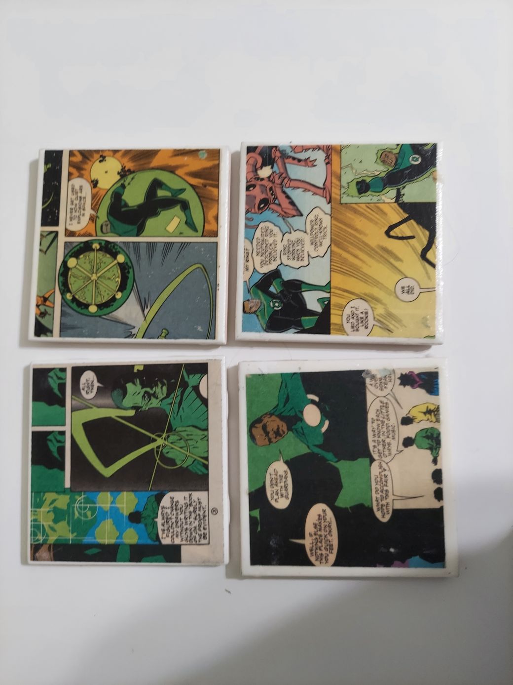 Green Lantern Comic Book Coasters made from actual comic books! This photo is just for sample use only. Message me for more variety! Can mix and match with other listings to make a set of 4! Listing price is for a set of 4.